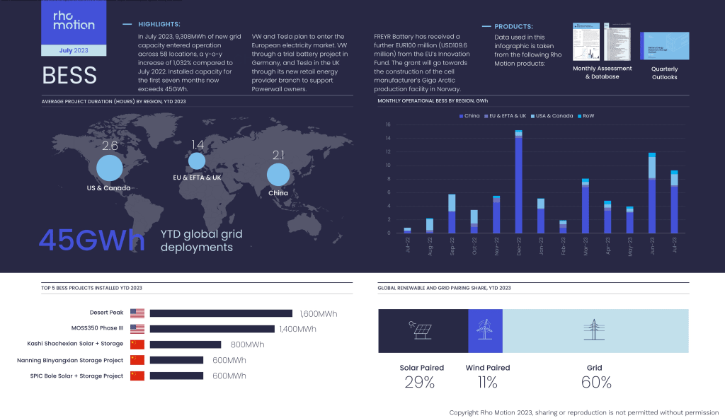 See below for our Battery Energy Stationary Storage Global Grid Deployments Infographic, July 2023. This draws on data from our BESS Monthly Assessment and our BESS Quarterly Outlook.