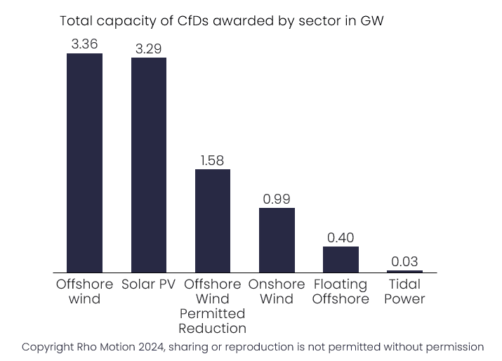 Technologies were categorised into three distinct pots for CfD allocation. Pot 1 included solar and onshore wind, while floating offshore wind and was part of Pot 2. Pot 3 was reserved for other offshore wind projects. Recognising the diversity of projects in the sixth allocation round (AR6), the government divided Pot 3 further into two categories: Offshore Wind Permitted Reduction projects and new Offshore Wind projects. Offshore Wind Permitted Reduction projects are those that secured a CfD in a previous round but opted to reduce their capacity by up to 25% to re-bid in AR6, reflecting the economic challenges posed by earlier strike prices in the current market environment.